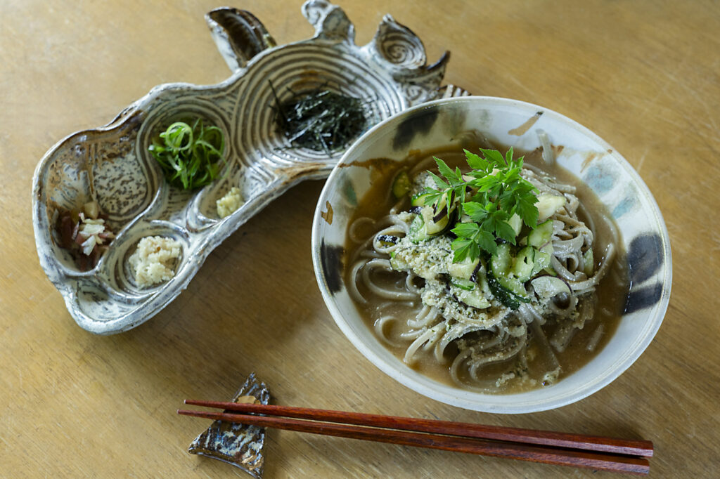 カフェでは、身体に優しい麻の実うどん・ベジカレー、ガパオ風ライス、スイーツ・珈琲・ハーブティー・アルコールなど。定期的に縄文陶芸ワークショップや各種イベントも開催しています。